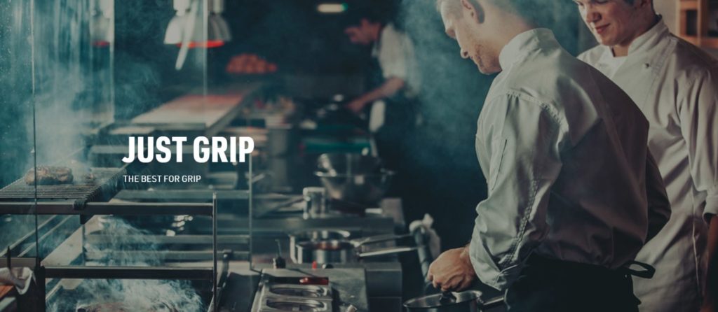 De Just Grip lijn is met name bedoeld voor koks, bar- en bedieningsmedewerkers en andere medewerkers in de horecasector die langdurig staand moet werken. Op verontreinigde, natte vloeren zorgt de VIBRAM® Coltello-zool dan ook voor ongekende grip en stabiliteit.
